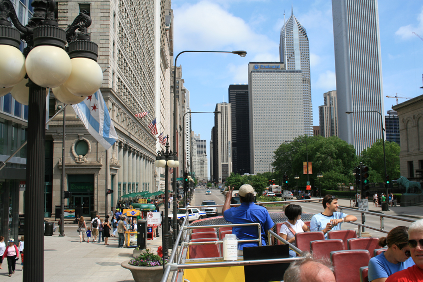 mit dem offenem Bus durch Chicago zum Navy Pier