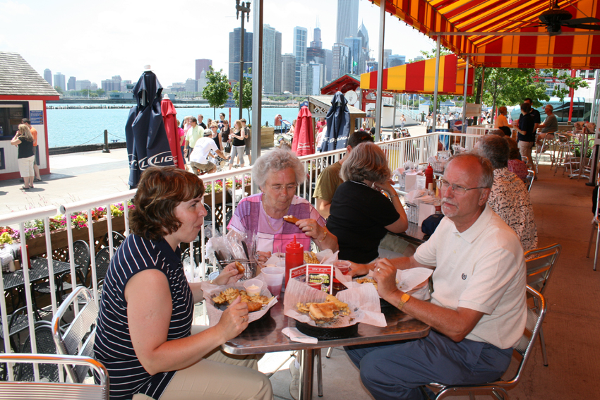 Vom Navy Pier hat man einen schönen Blick auf die Skyline und gut essen kann man dort auch.